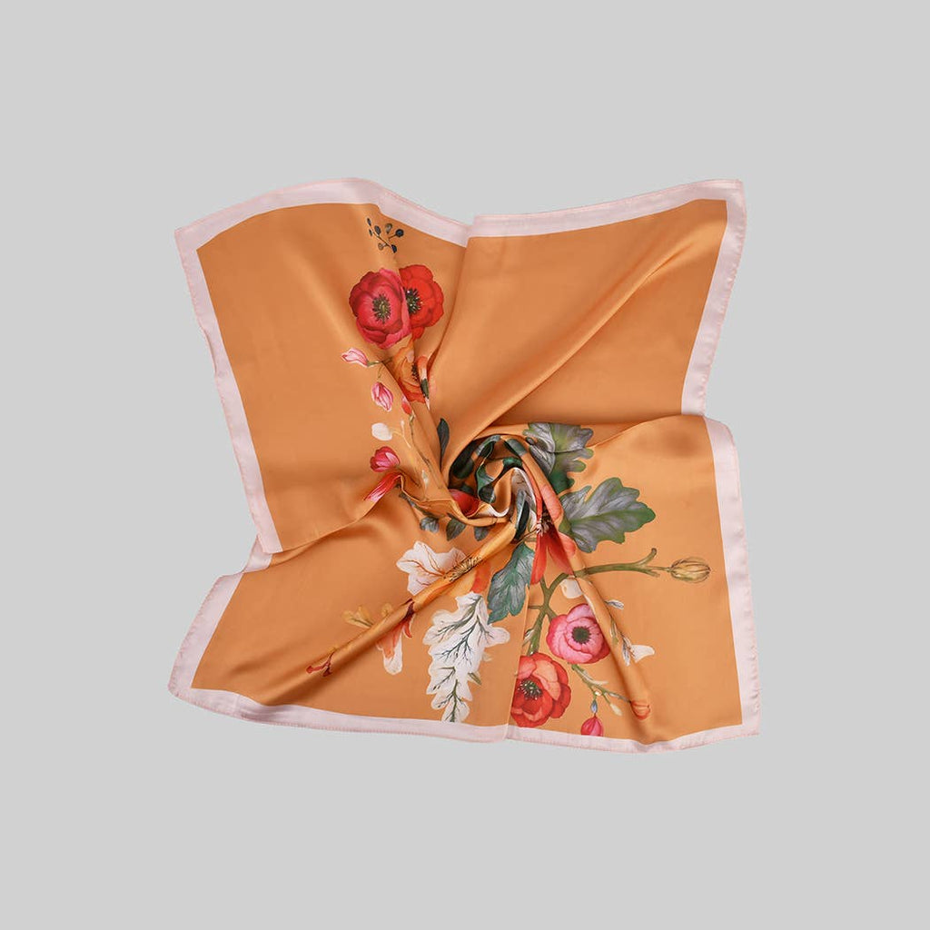FLOWER PRINT SILKY SQUARE SCARF